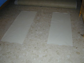 First we taped some paper down. | |