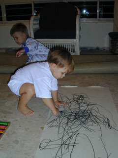 Here is Josiah with his drawing. He likes to color with all the colors. | |