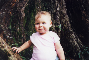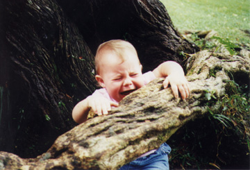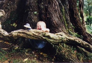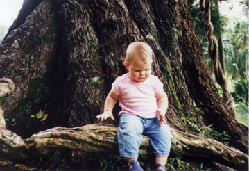 Okay, Miranda, sit on this root and smile.