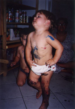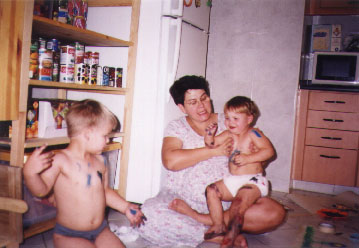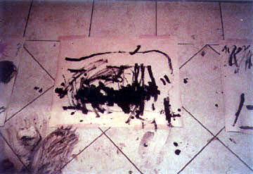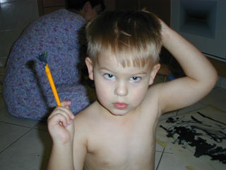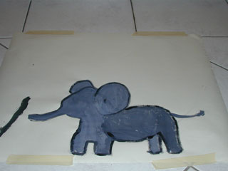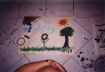 First Mama taped some paper on the floor in the kitchen, because she did not want us to paint on the couch.