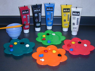 Then Daddy got all the paint and brushes ready. Mama got the paint at Ikea.