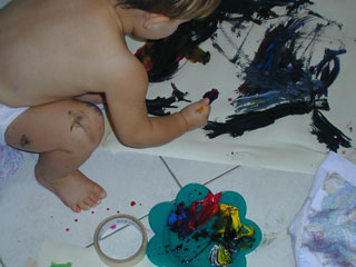 This is Miranda and she is having lots of fun painting. She likes to mix all the colors.