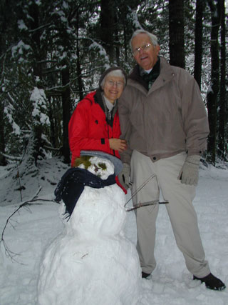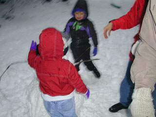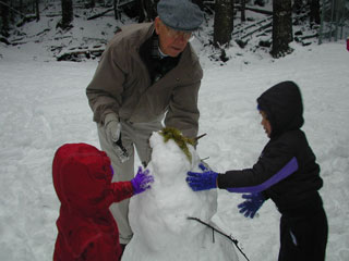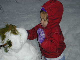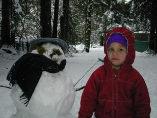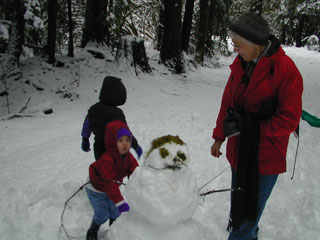 Here's Josiah with the snowman too. He helped Nana put the moss hair on and put some twigs on for a nose too. | ||