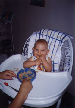 I love it best when Daddy feeds me and makes weird sounds to get me to open my mouth. Doesn't he know I know he's doing that?![]() |