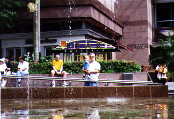 We went to Hong Kong first on our trip. We went to the top of Victoria Peak. There was a fountain at the top. It was funny to watch the water jump out of the fountain. |